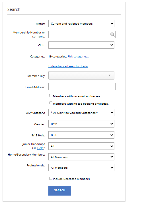 Once you have filtered down you search, you can select the "Search" button to display the filtered members.