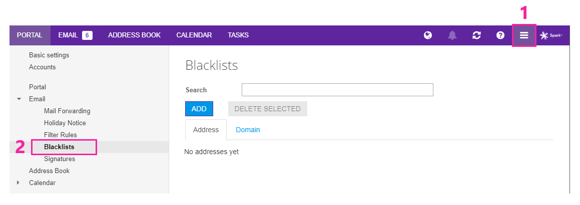 - Click Address Book on the top menu