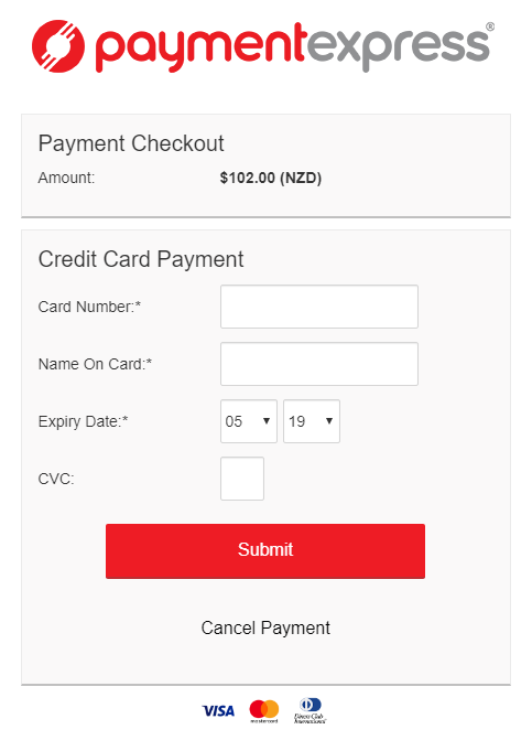 - You will be taken to Payment Express secure site. Fill-out the details and click Submit.