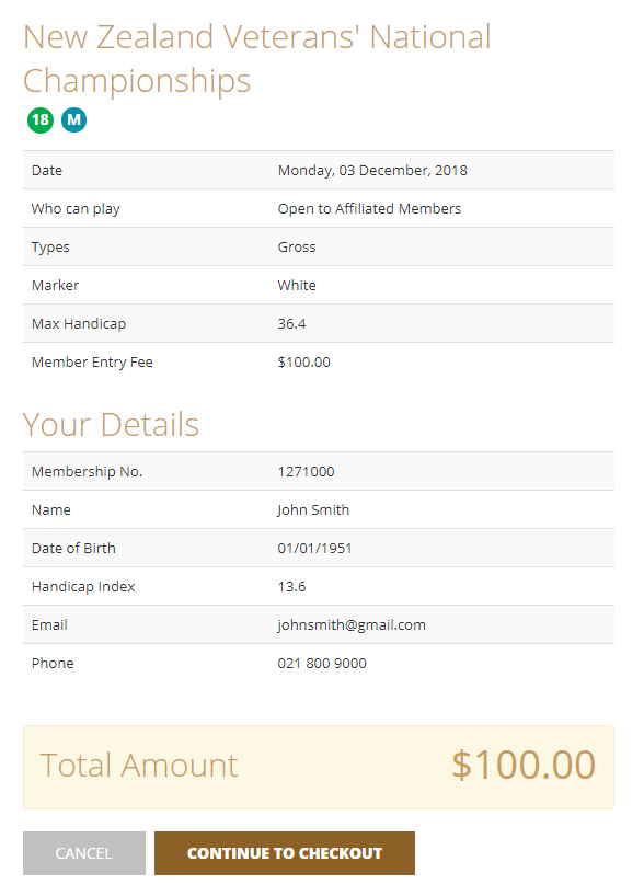 If you're trying to register into a competition you're already registered into, a message will display sayin, "You are already registered for this event. If you would like to cancel, please contact the golf club."