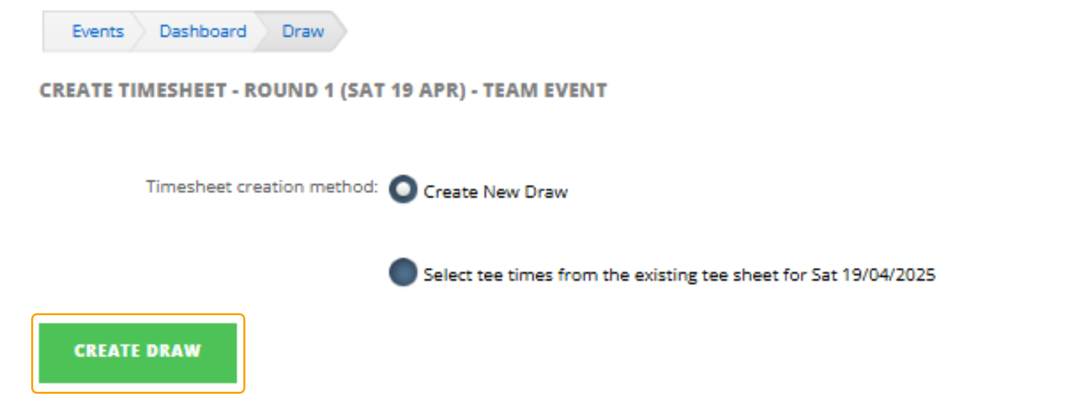 3. Confirm by selecting "Create Draw"