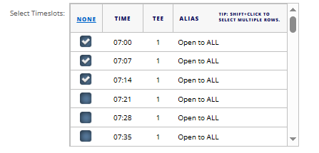 Select Tee Times from the already existing Tee Sheet