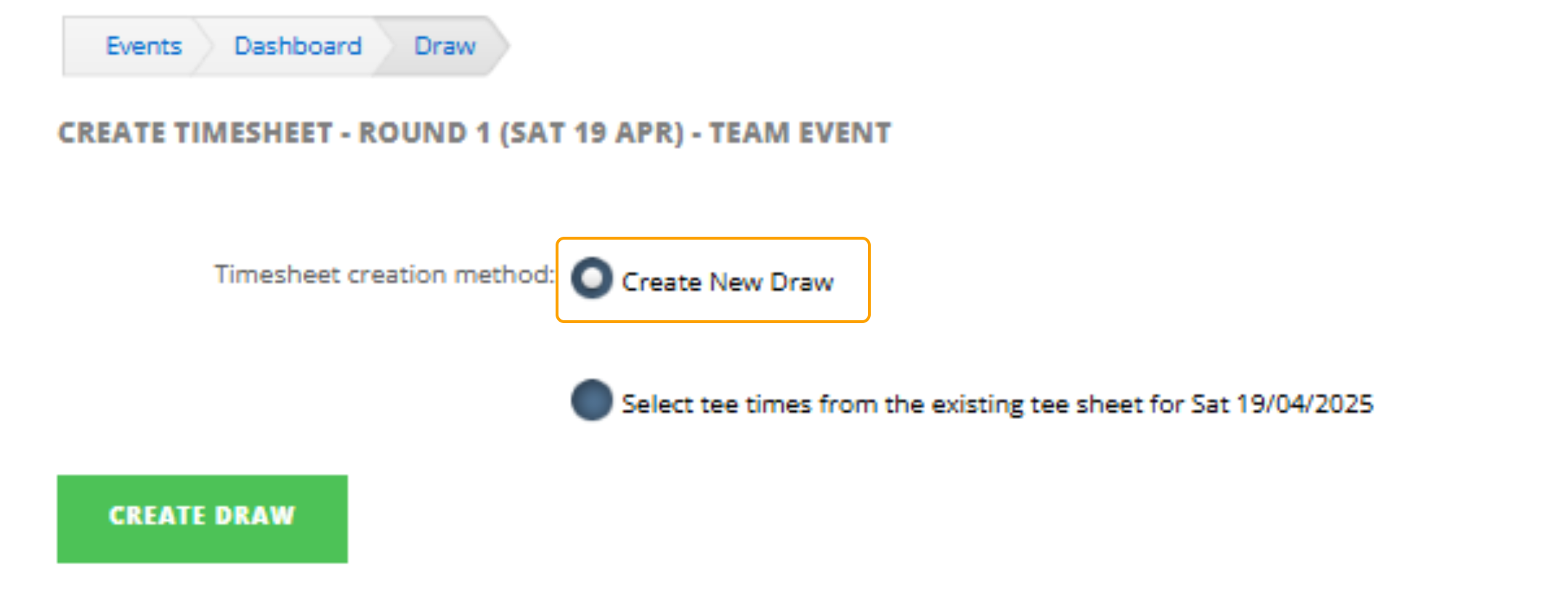2. Under the "Timesheet Creation Method", select "Create New Draw"