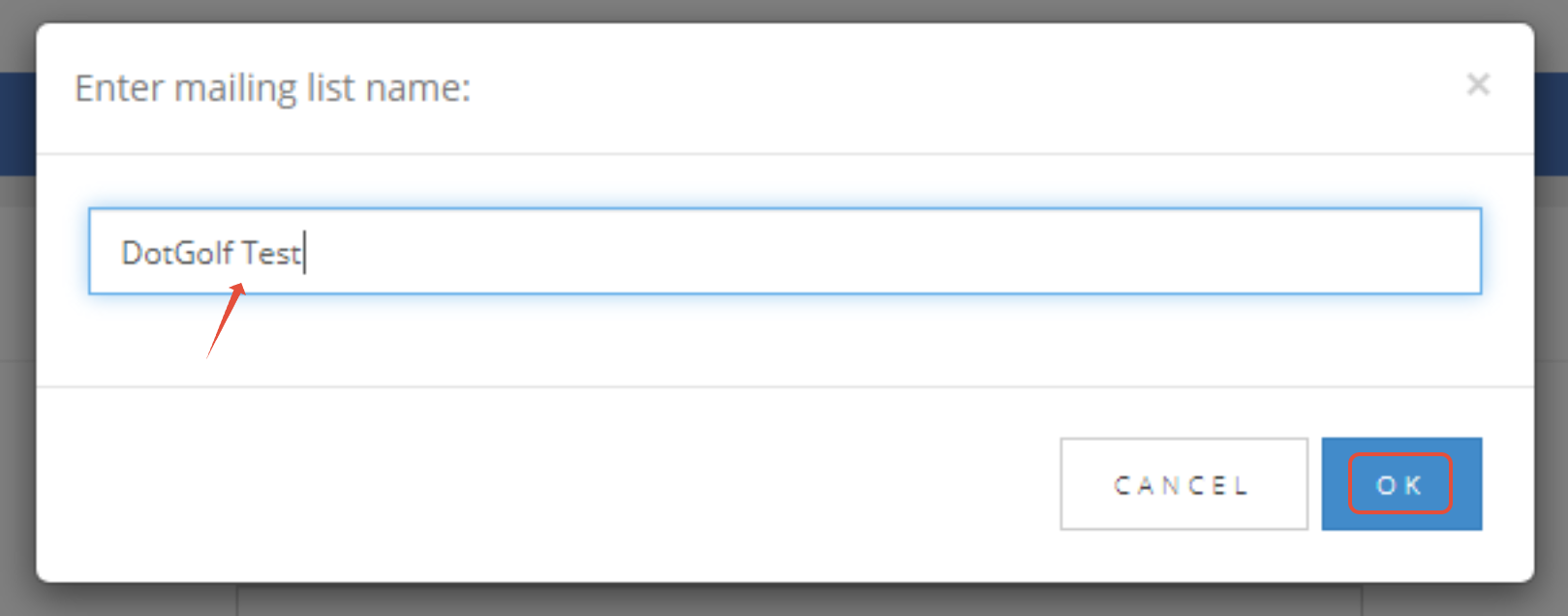 2. Enter a mailing list name. Click OK.