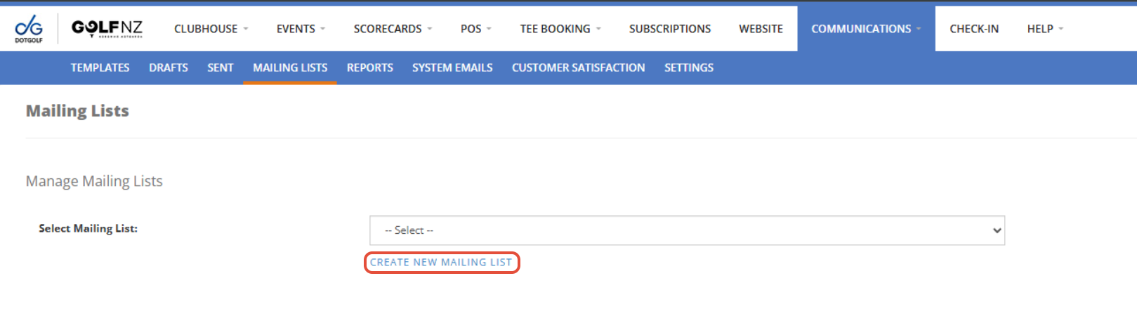 Mailing Lists are groups of email addresses which are collected through the following areas of the DotGolf-hosted club website: