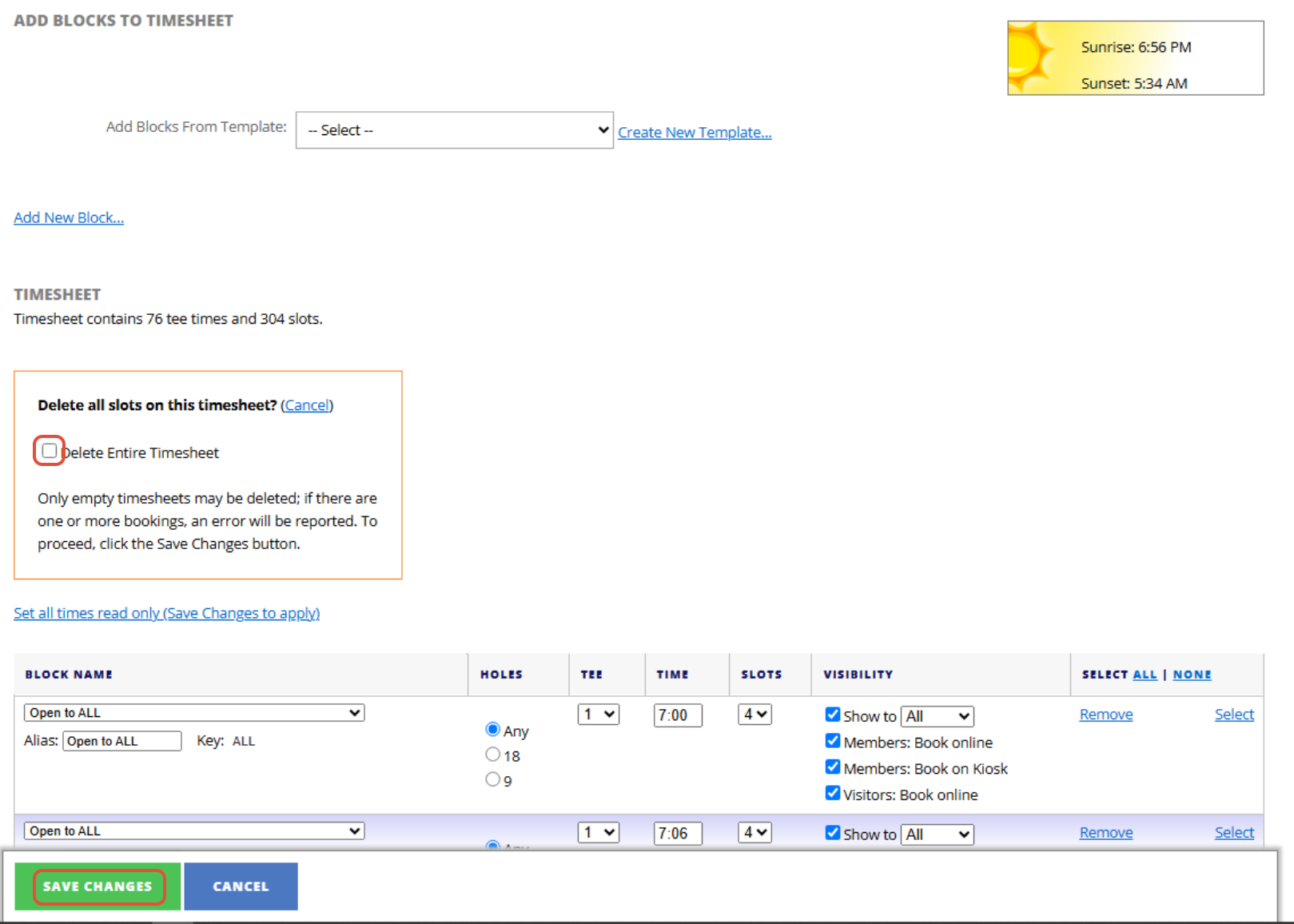 3. Then select "Delete Entire Timesheet" tick box and press "Save Changes".