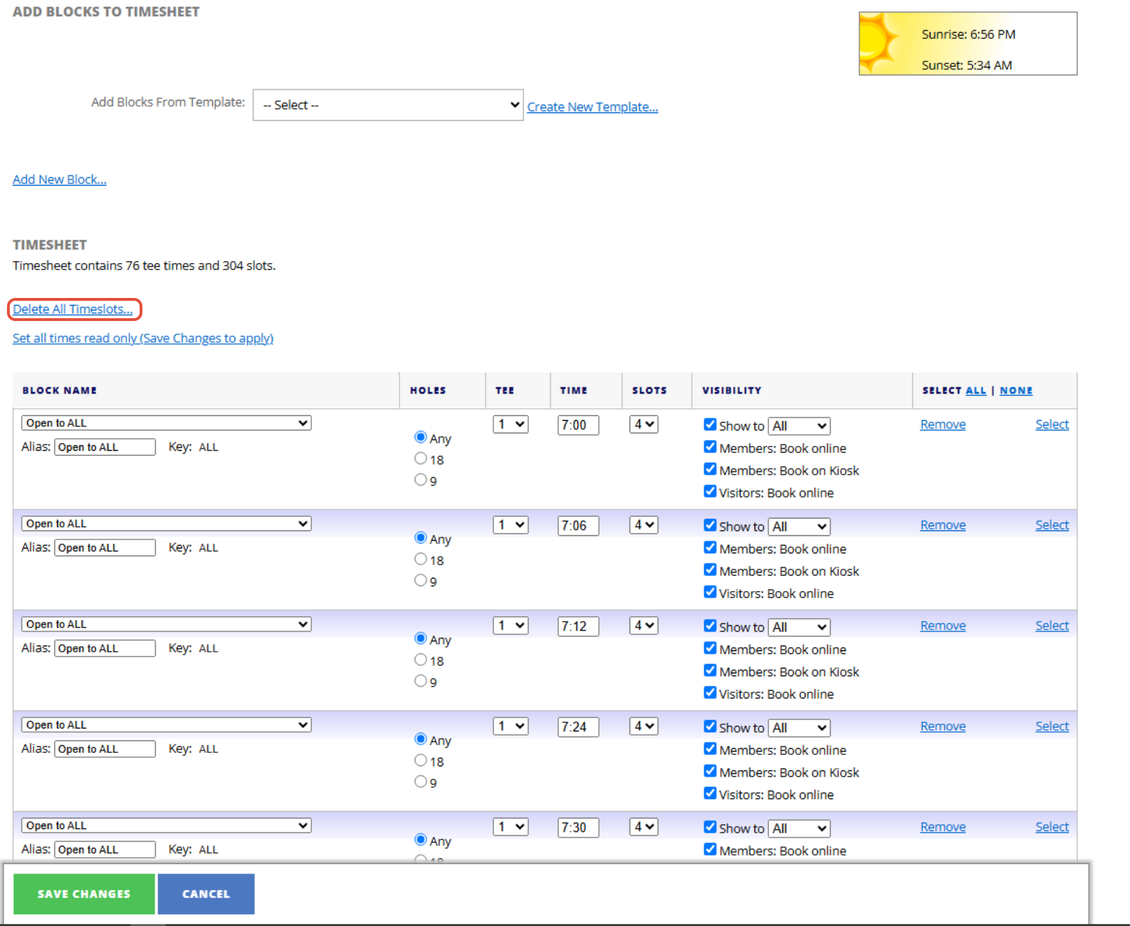 2. You can then press "Delete All Timeslots".