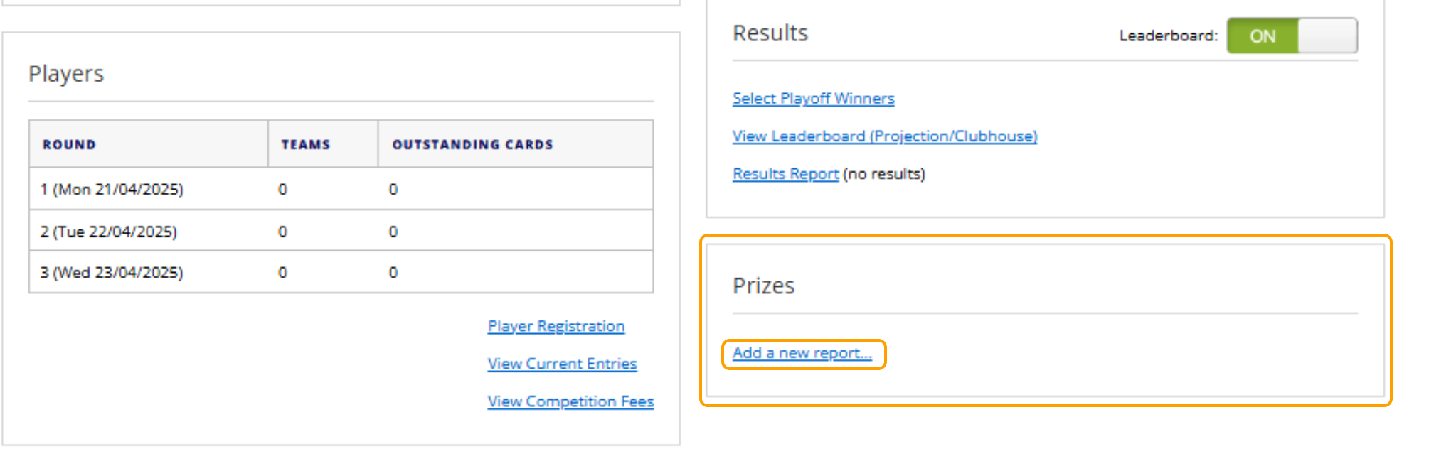 Once all of the scorecards have been returned for the competition, you can generate a Prize Report.