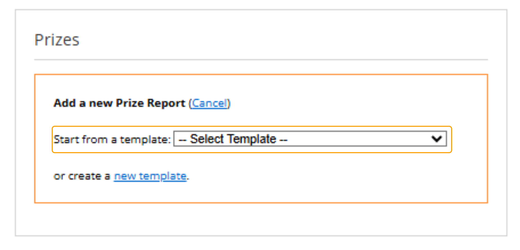 1. In the competition dashboard, select "Add a New Template" under the Prizes area.