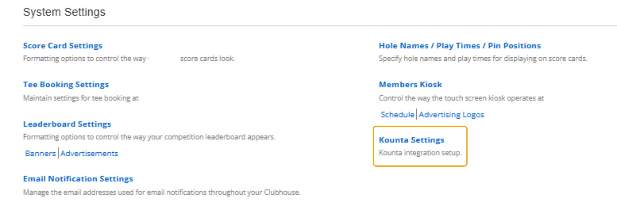 The Kounta Settings can be found under the System Settings in Clubhouse.