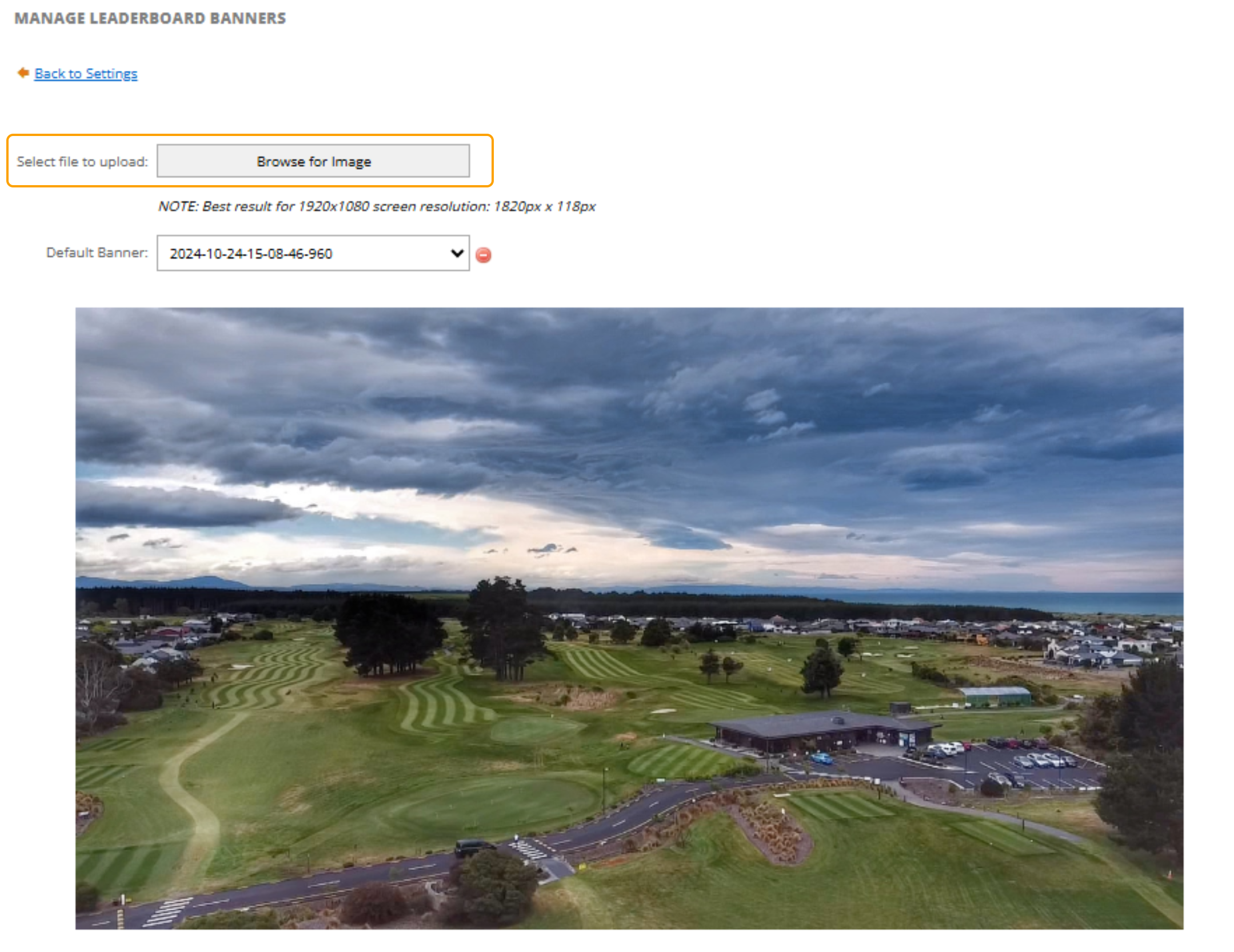 Once a banner has been uploaded, it will be displayed at the top of the Leaderboard as follows: