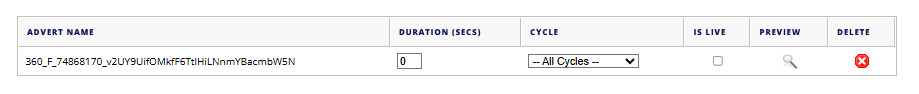 Once an image has been uploaded, you can then set the duration and cycle: