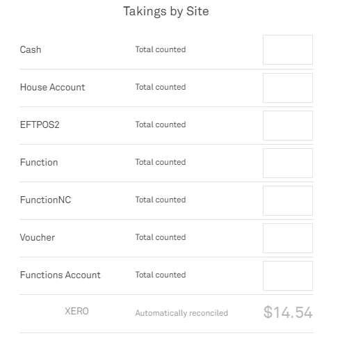 Once the invoice is paid in Xero, this payment automatically flows through into the finalise payments area for the user to see this has been paid. This can be seen below in the example Finalise Takings area.