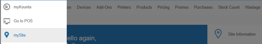 1. In the Kounta back office, go to mySite and select the Stock Count menu option: