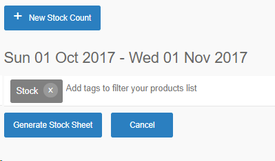At this stage, you can filter the Stock Count on certain products. As part of our setup process, we tagged products requiring a Stock Count with the tag "stock". This allows for you to do a stock count only for these "Stock" items.