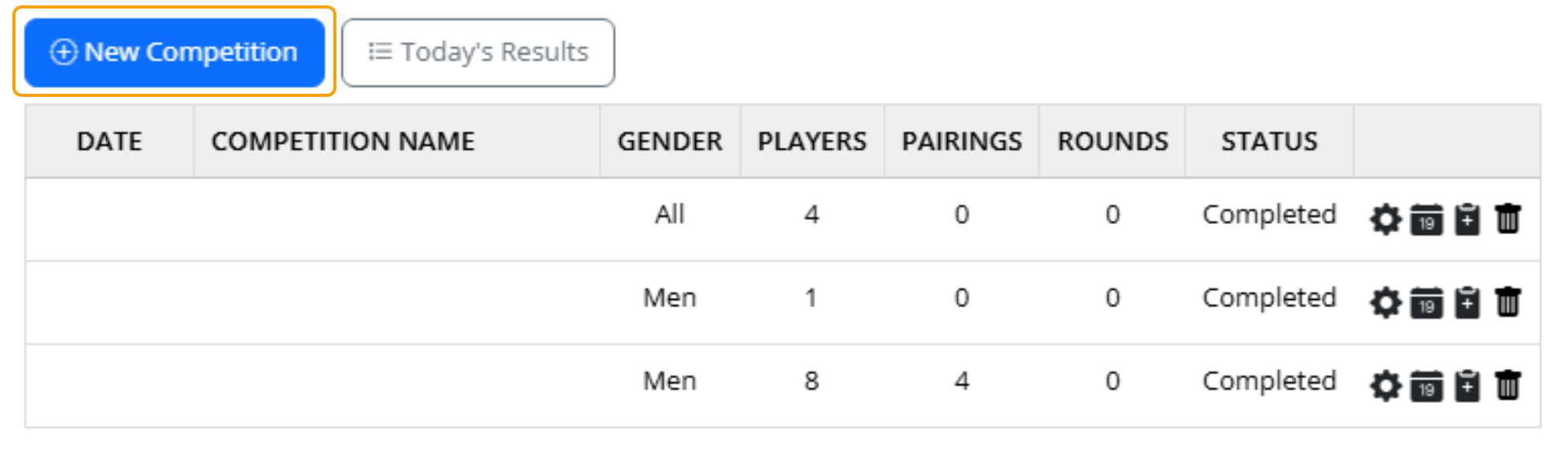 1. Select "New Competition"
