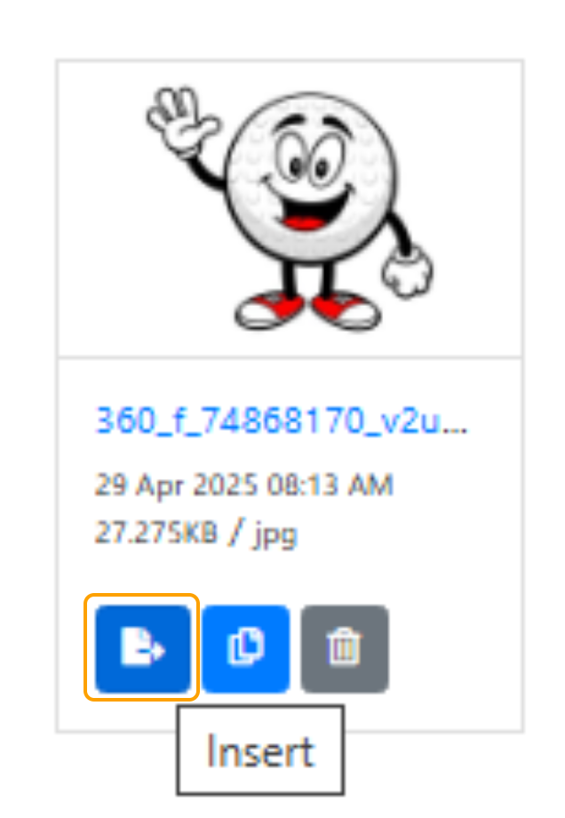 14. Select the "Insert" icon under the image that has been uploaded.