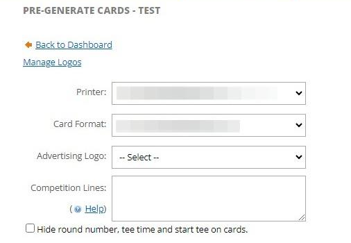 Pre-Print Cards for Tee Sheets and Competition Entries
