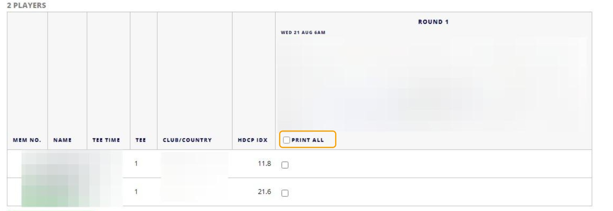 3. You can also select the tee time of the scorecards you want to print or filter this for specific tees.