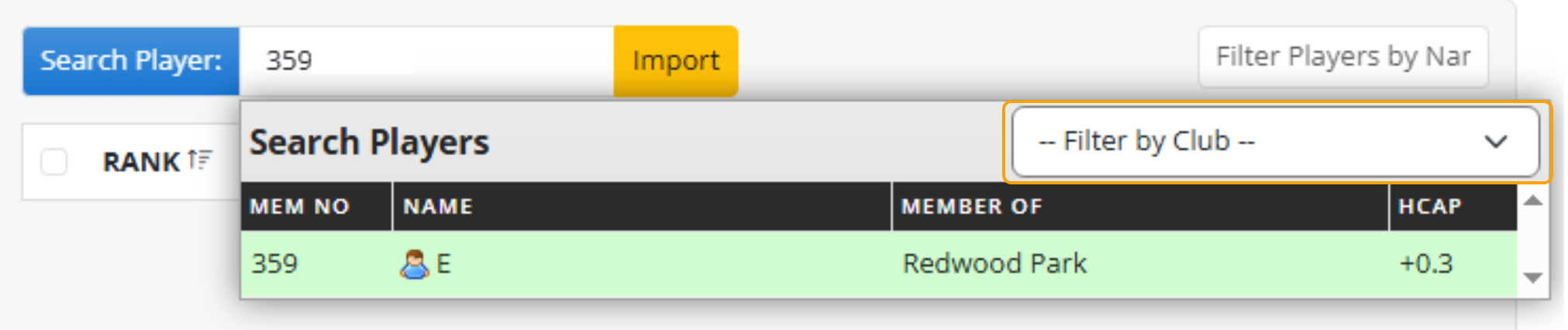 Note: Update this to "Filter By Club" at the top of the list to search all clubs.