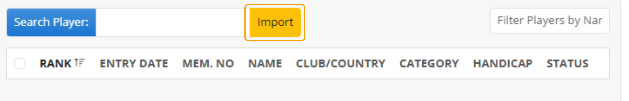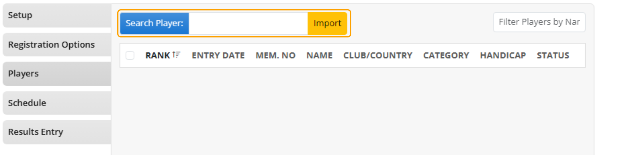 3. To import players from a Previous Event, select 'Import'