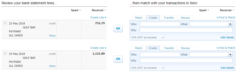 Here are 2 Eftpos statement transaction lines that have been deposited into the bank