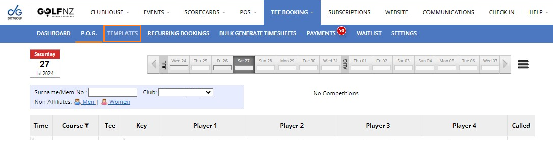 1. To add a starter to a Tee Sheet Template, go to Tee Booking Templates.