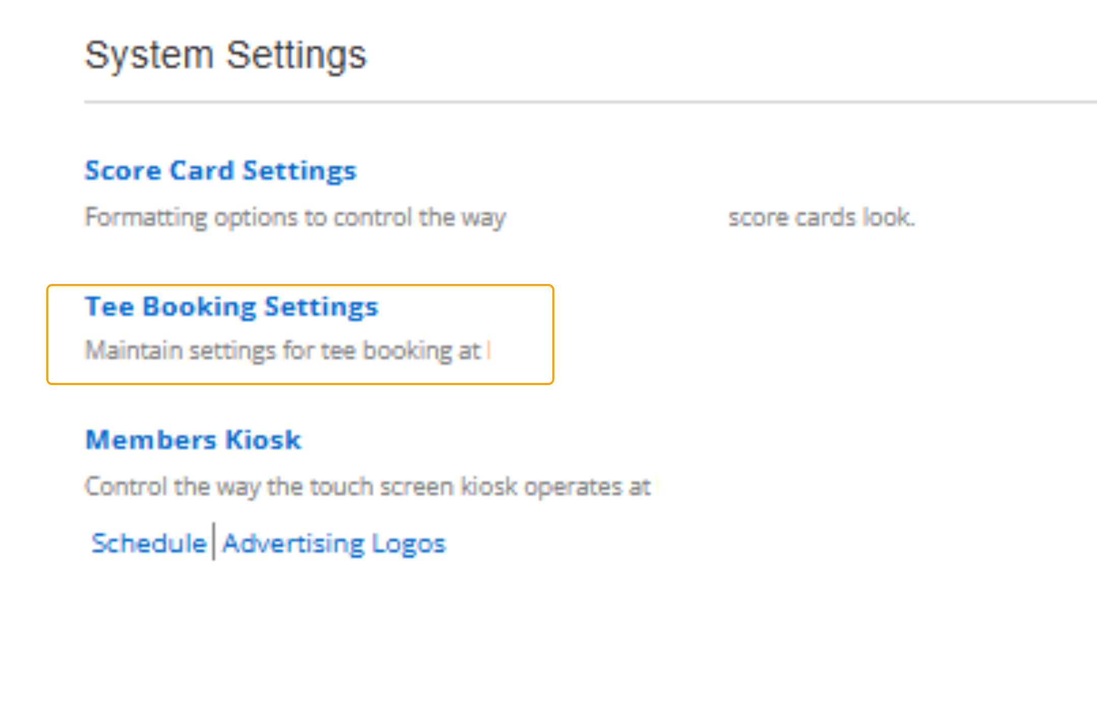 The Tee Booking settings allow the club to change preferences for the tee sheet.